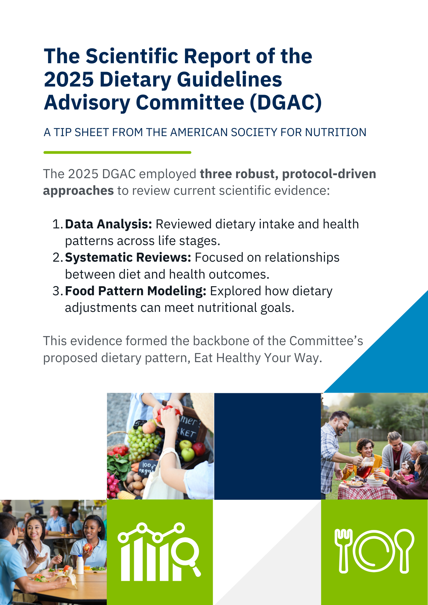 ASN’s 3-part webinar series provides support navigating the Scientific Report of the 2025 Dietary Guidelines Advisory Committee (DGAC) and takes a deeper dive into topics where the DGAC found the evidence to be lacking.